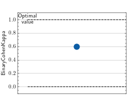 >>> from torch import rand, randint >>> # Example plotting a single value >>> from torchmetrics.classification import BinaryCohenKappa >>> metric = BinaryCohenKappa() >>> metric.update(rand(10), randint(2,(10,))) >>> fig_, ax_ = metric.plot()