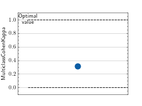 >>> from torch import randn, randint >>> # Example plotting a single value >>> from torchmetrics.classification import MulticlassCohenKappa >>> metric = MulticlassCohenKappa(num_classes=3) >>> metric.update(randn(20,3).softmax(dim=-1), randint(3, (20,))) >>> fig_, ax_ = metric.plot()