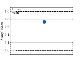 \[F_{1} = 2\frac{\text{precision} * \text{recall}}{(\text{precision}) + \text{recall}}\]The metric is only proper defined when \(\text{TP} + \text{FP} \neq 0 \wedge \text{TP} + \text{FN} \neq 0\) where \(\text{TP}\), \(\text{FP}\) and \(\text{FN}\) represent the number of true positives, false positives and false negatives respectively. If this case is encountered a score of zero_division (0 or 1, default is 0) is returned.