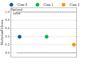 >>> from torch import randint >>> # Example plotting a single value per class >>> from torchmetrics.classification import MulticlassF1Score >>> metric = MulticlassF1Score(num_classes=3, average=None) >>> metric.update(randint(3, (20,)), randint(3, (20,))) >>> fig_, ax_ = metric.plot()